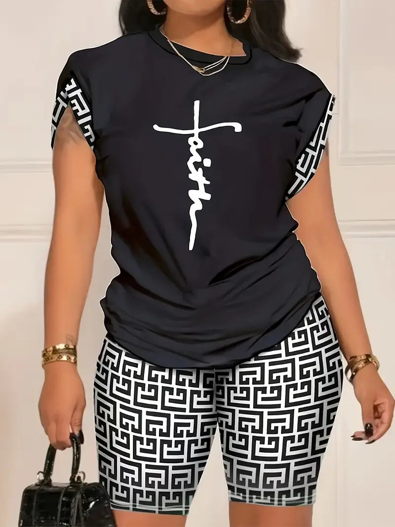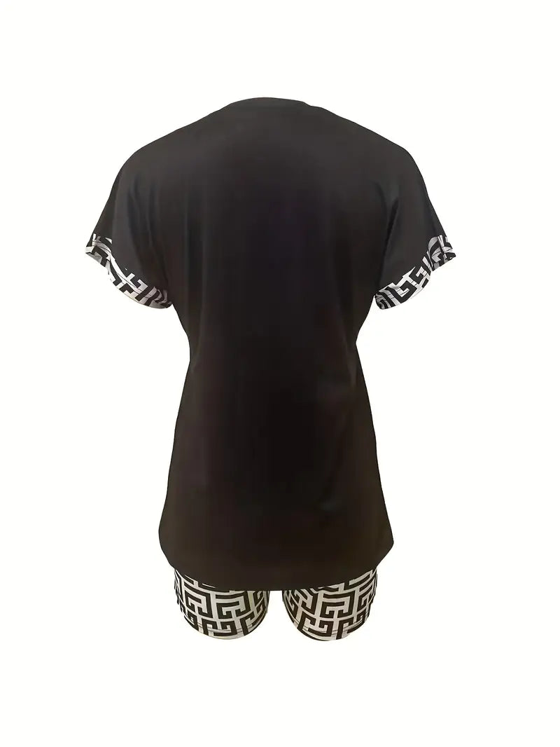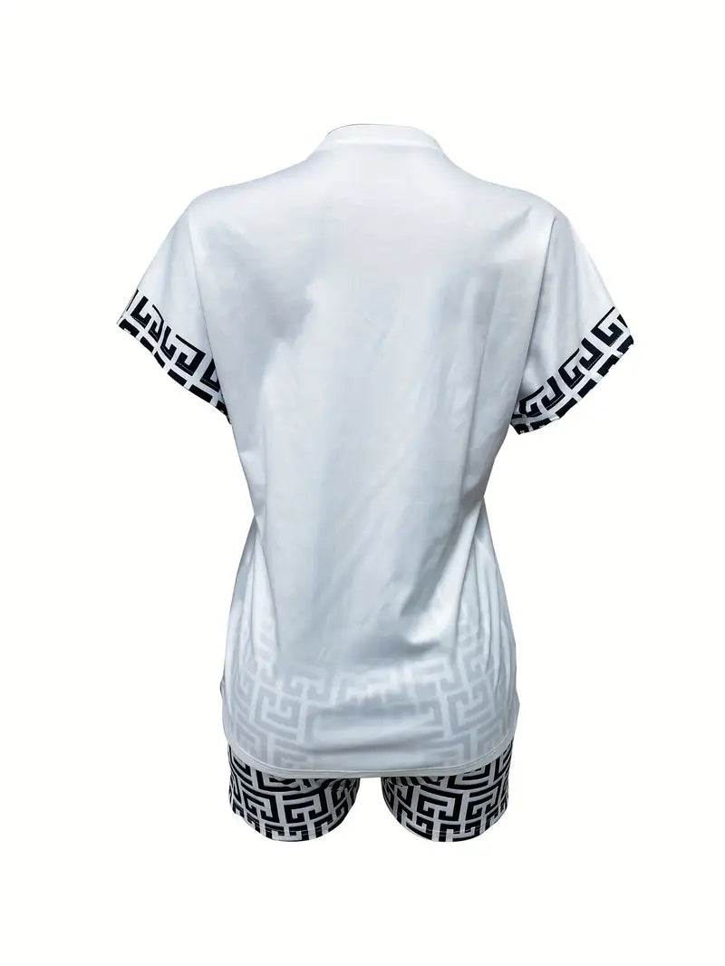 11293 Nouveau Ensemble de Shorts Imprimés à Col Rond pour Femmes Mode Européenne et Américaine Printemps/Été Jaune/Taille de l'étiquette : M