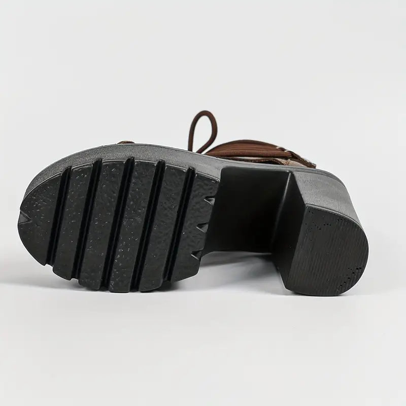 Bottes à lacets ouvertes à bout ouvert pour femmes - Talon haut en microfibre avec fermeture éclair et semelle en PU - Bottes de couleur unie polyvalentes pour tenue décontractée ou de soirée