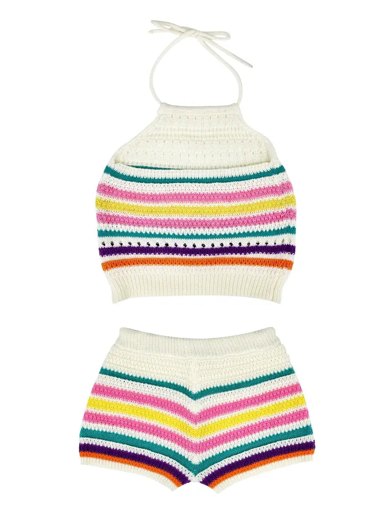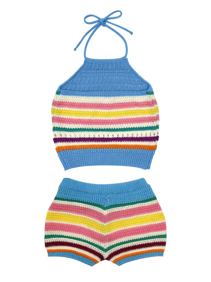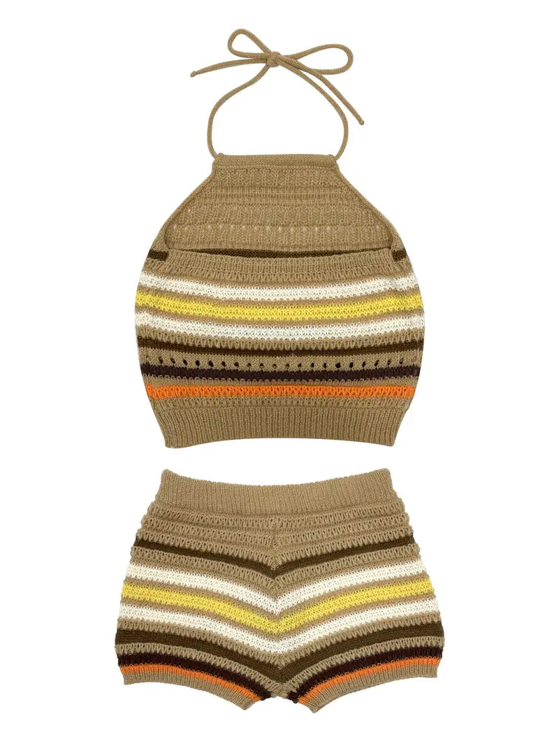 Ensemble Deux Pièces À Rayures Creuses Y2K Pour Femmes