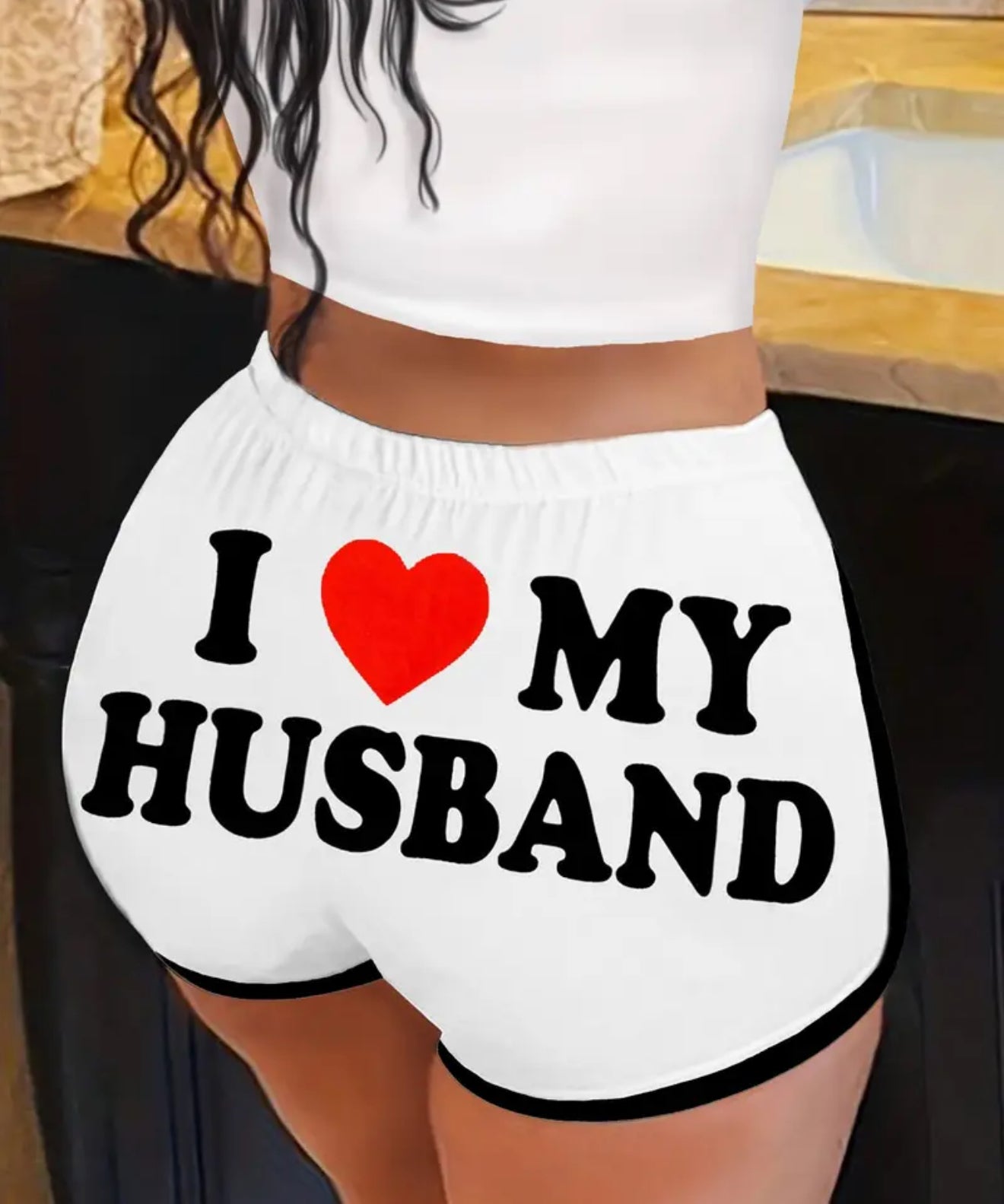 Women's Elastic Waist Letter Print Shorts - Spring Summer Casual Wear