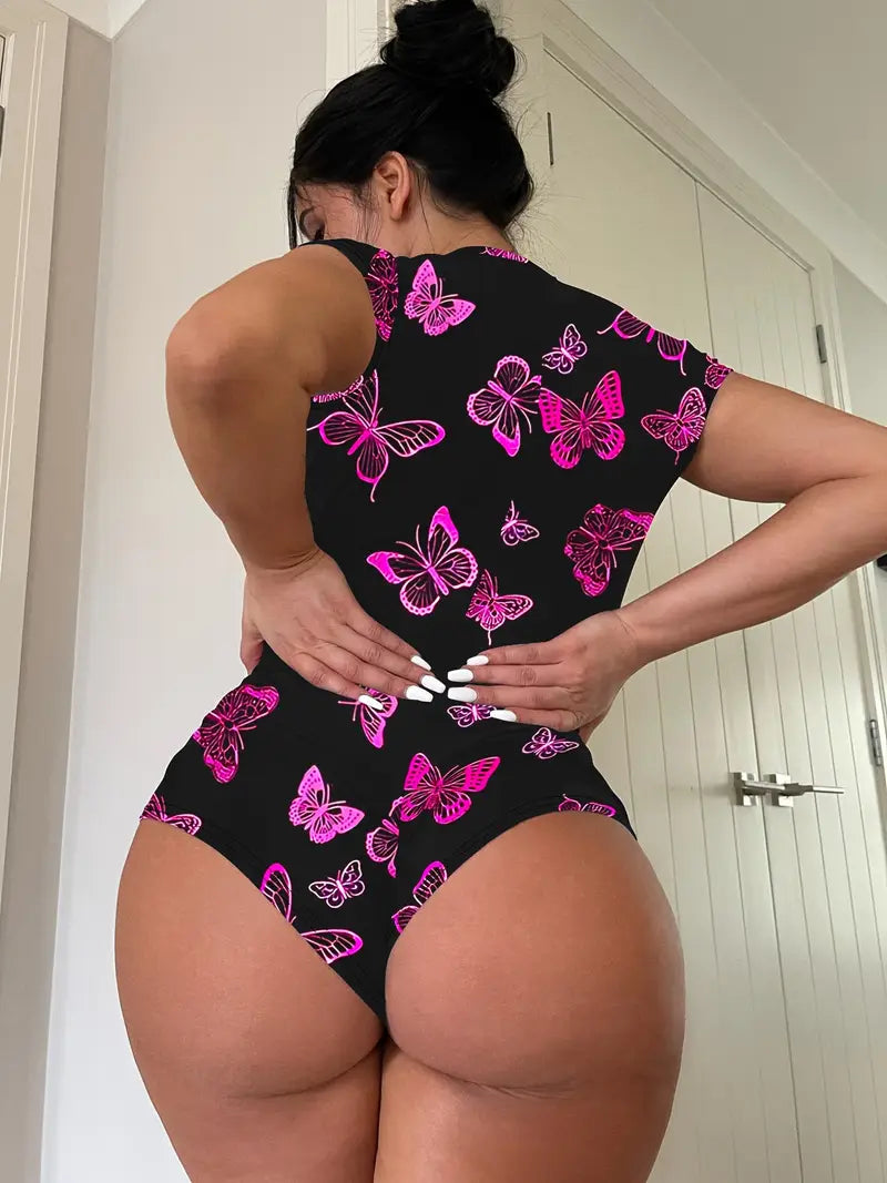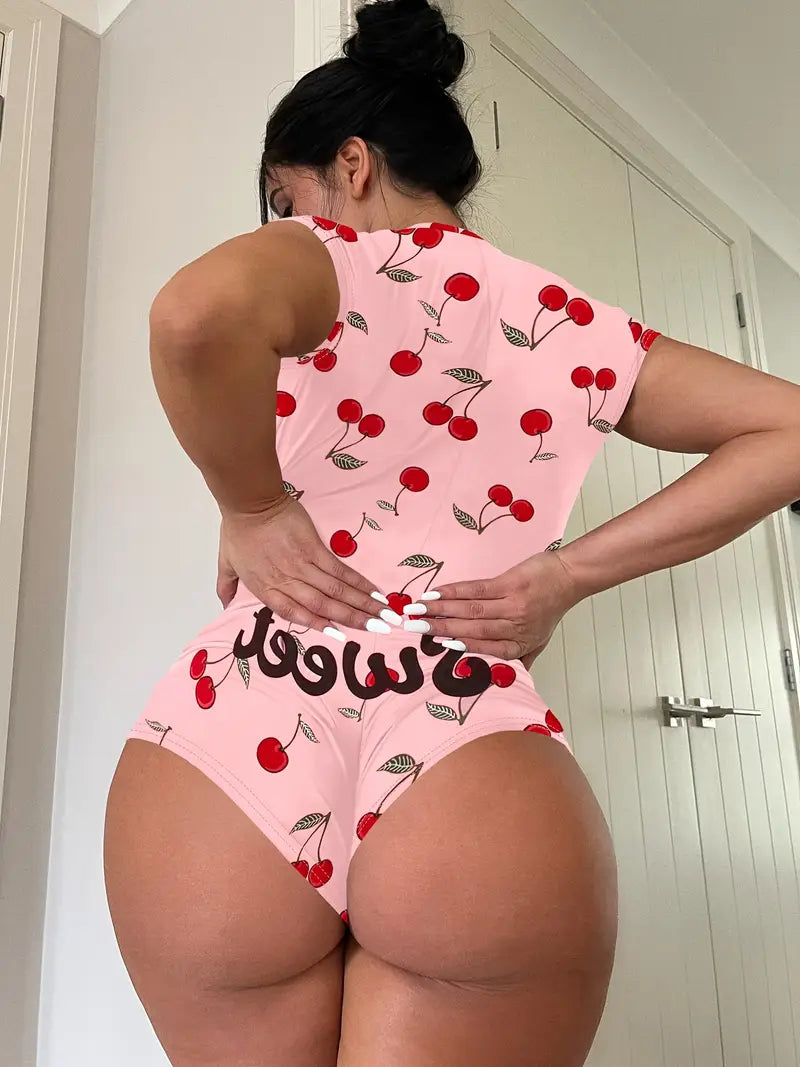 Comfortable women's one-piece pajama jumpsuit featuring a stylish V-neck design with button details. Made with soft, skin-friendly fabric perfect for lounging and sleeping.